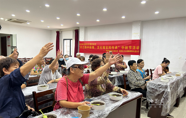 “解碼月餅文化”環(huán)節(jié)則從舌尖上展現(xiàn)中秋韻味。現(xiàn)場(chǎng)展示了廣式蓮蓉、蘇式鮮肉、京式自來(lái)紅等各地特色月餅,講解其象征意義——圓形寓意“闔家團(tuán)圓”,五仁寄托“五谷豐登”的美好愿景,并分享了月餅從唐代“胡餅”到現(xiàn)代多元口味的演變歷程。此外,活動(dòng)還介紹了傳統(tǒng)祭月儀式中的供品擺放、宮燈點(diǎn)燃、祭文誦讀等禮儀細(xì)節(jié),以及浙江錢(qián)塘觀(guān)潮、安徽徽州舞草龍、廣東潮汕燒塔等地域民俗,讓居民領(lǐng)略到中秋文化在不同水土中綻放的獨(dú)特魅力。