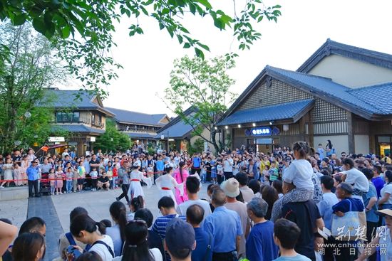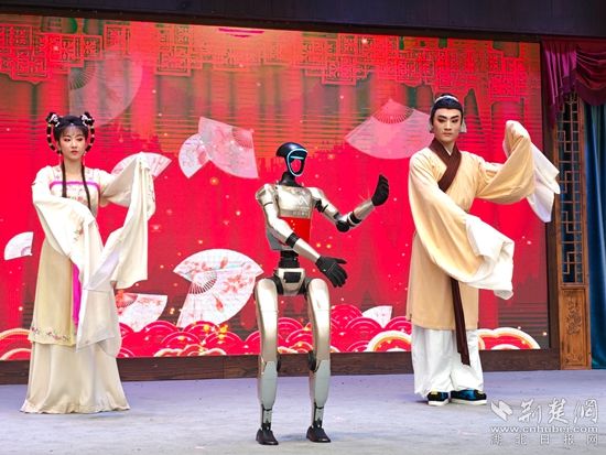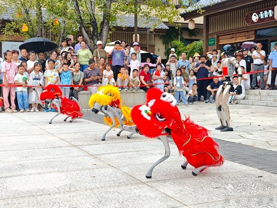 白天,智能機(jī)器人登臺唱起經(jīng)典黃梅戲,聲聲入耳;靈活的機(jī)器狗躍動翻騰,引得觀眾連連喝彩。機(jī)器人巡游隊伍更是“身懷絕技”,握手、跳舞等表演樣樣在行,游客爭相互動合影。