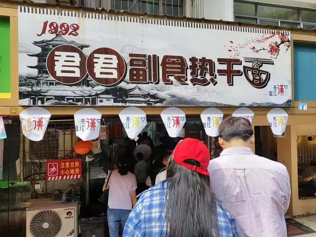 優(yōu)化營商環(huán)境,關(guān)鍵要讓小店輕裝上陣。作為江漢區(qū)碳水文化的重要符號,君君副食曾受限于門面窄小,客流量大時顧客只能站著吃、蹲著拌,體驗不佳等各類問題。街道了解情況后主動靠前,聯(lián)動相關(guān)部門爭取支持,既保留了老店小而美的煙火氣,又通過合理規(guī)劃提升了經(jīng)營舒適度。如今,游客順著“漢口必吃榜”“來漢口 逛江漢”的推薦牌來打卡,周邊上班的白領(lǐng)順路打包,小店日均客流更穩(wěn)定,口碑也越傳越遠。