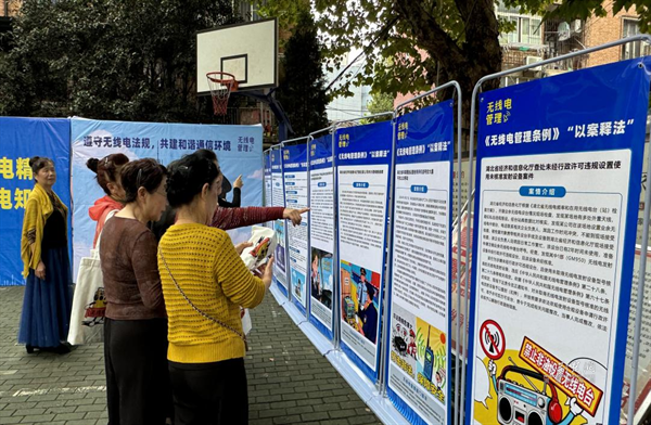 在社區(qū)幸福廣場,一排排科普展板前圍滿居民。展板從無線電基本原理講起,通過“以案釋法”的形式揭露“黑廣播”“偽基站”的詐騙手法,詳細說明危害與識別技巧,引導(dǎo)居民合法使用頻譜資源。