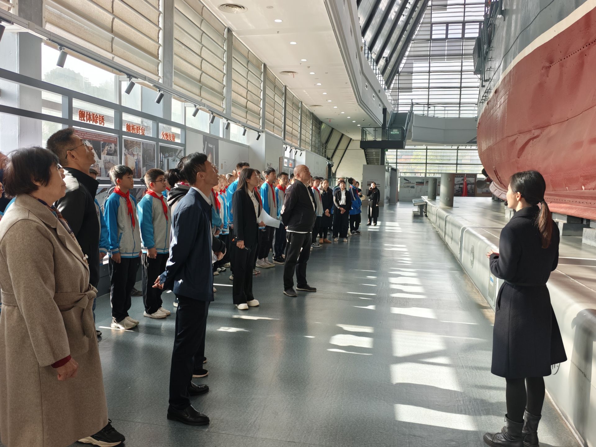 活動于上午8時30分在中山艦艦體前正式啟幕。中山艦旅游區(qū)管理處講解員以艦體尾部“中山”二字的歷史淵源為切入點(diǎn),講述中山艦從訂購到參與抗戰(zhàn)的全歷程,專業(yè)解讀中融入文物背后的英雄故事;緊接著全體人員齊聲合唱《保衛(wèi)大武漢》《保衛(wèi)黃河》兩首抗戰(zhàn)經(jīng)典歌曲,伴隨著激昂的旋律,戰(zhàn)火紛飛的年代仿佛就在眼前,八十七年前中山艦官兵在武漢會戰(zhàn)中浴血奮戰(zhàn)的壯烈場景重現(xiàn)腦海。