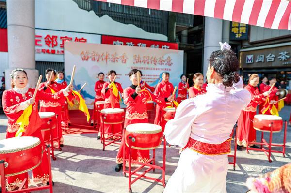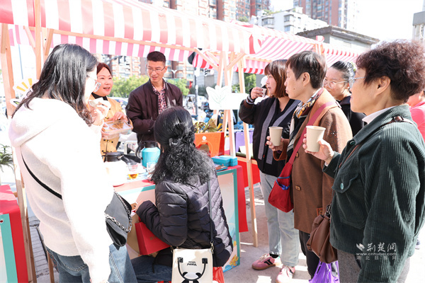 活動設(shè)置互動體驗與文藝表演兩大區(qū)域,現(xiàn)場熱鬧非凡?;芋w驗區(qū)的“DIY調(diào)飲攤”前,居民們親手調(diào)配創(chuàng)意茶飲,在沖泡間感受茶飲的多樣魅力;氛圍打卡點深受年輕居民青睞,大家紛紛拍照留念,并通過社交媒體分享活動盛況,實現(xiàn)線下體驗與線上傳播的有效聯(lián)動。