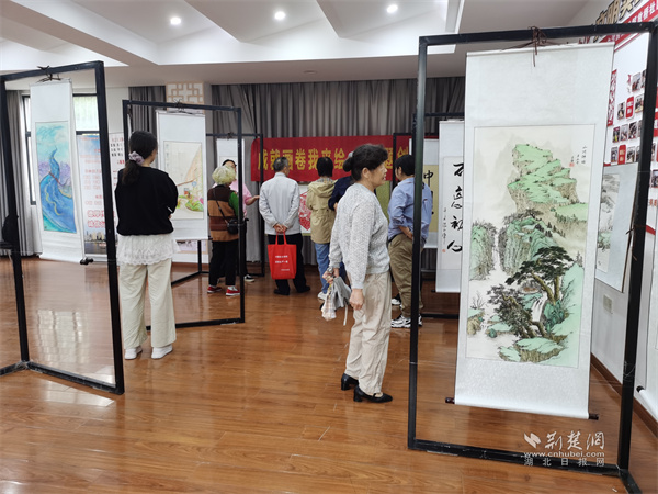 在成年人作品展示區(qū),一幅采用微噴打印技術(shù)的作品,采用色塊拼接的藝術(shù)手法,巧妙地將鸚鵡洲長江大橋與密集的高層建筑群相結(jié)合,共同勾勒出現(xiàn)代都市的壯麗景觀。另外一幅作品以工筆勾線為基礎(chǔ),結(jié)合平涂與暈染技法,生動(dòng)呈現(xiàn)黃鶴樓下高速列車飛馳而過的畫面,實(shí)現(xiàn)了“古今”時(shí)空對(duì)話的獨(dú)特場景。此外,還有融合素描與水彩技法的作品,以寫實(shí)風(fēng)格還原炭廠角省船宿舍的共享空間,傳遞出寧靜院落的生活氣息。“街巷新顏映朝陽”和“鄰里情濃勝春暉”等書法佳作,以獨(dú)特的藝術(shù)形式彰顯了傳統(tǒng)文化的深厚魅力。