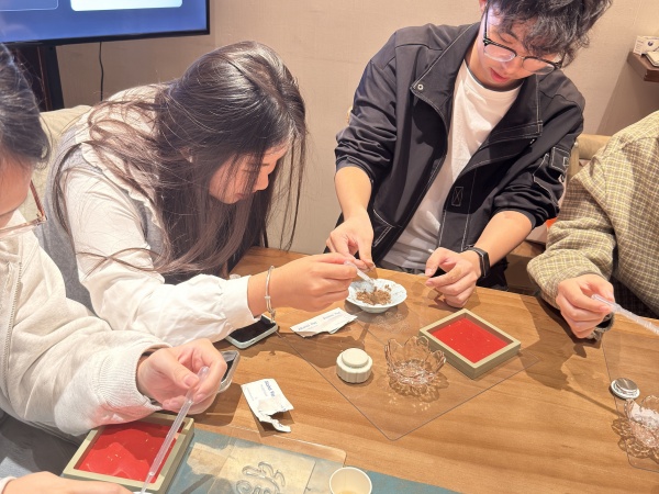 活動伊始,非遺合香師首先為青年們講解了鵝梨帳中香的歷史淵源,現(xiàn)場演示“蒸梨窨香”古法工藝及揉香、塑形、刻字等制作要領(lǐng)。在老師指導下,青年們分組協(xié)作,專注調(diào)配香材、精心雕刻紋樣,在協(xié)作互動中增進了解、拉近心靈距離。香品制作完成后,大家互贈作品并附上“香傳心意,福伴君行”的祝福,讓非遺技藝成為情感傳遞的溫暖紐帶。