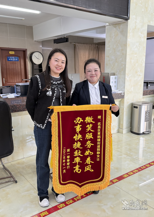 荊楚網(wǎng)(湖北日?qǐng)?bào)網(wǎng))訊(通訊員劉麗)近日,武昌區(qū)黃鶴樓街道便民服務(wù)中心工商窗口上演了暖心一幕。一位商戶代表將一面書寫著“微笑服務(wù)如春風(fēng),辦事快捷效率高”的錦旗,鄭重送到工作人員郭靜手中,對(duì)她即使在生病住院期間仍堅(jiān)持線上為商戶排憂解難的敬業(yè)精神表達(dá)誠摯謝意。