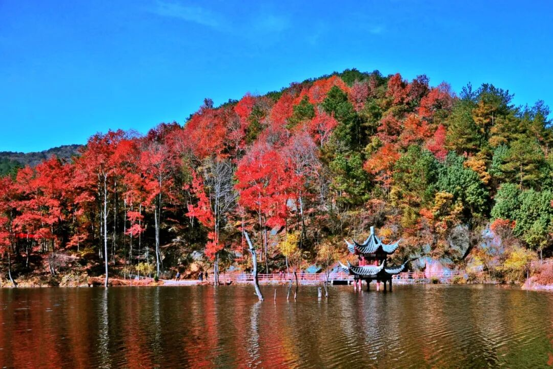 紅葉峽谷、湖光楓影、彩林全景