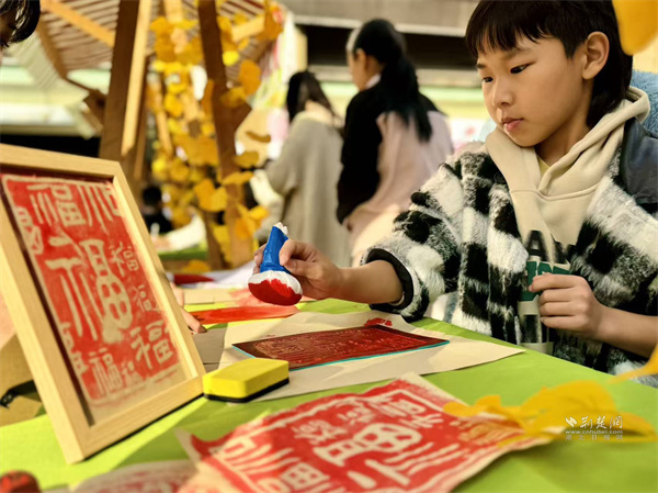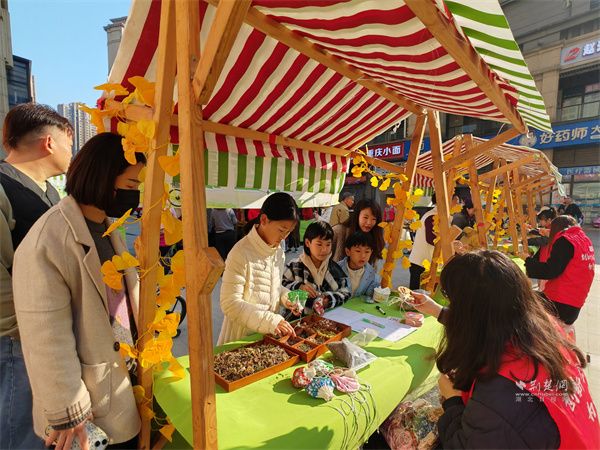 中藥香囊攤位散發(fā)著艾草、薄荷等香料的清香,居民們?cè)谥驹刚呃蠋煹闹笇?dǎo)下,根據(jù)個(gè)人喜好,自由搭配制作專屬香囊。福字拓印DIY區(qū),小朋友們手持拓印工具,親手制作寓意吉祥的福字。