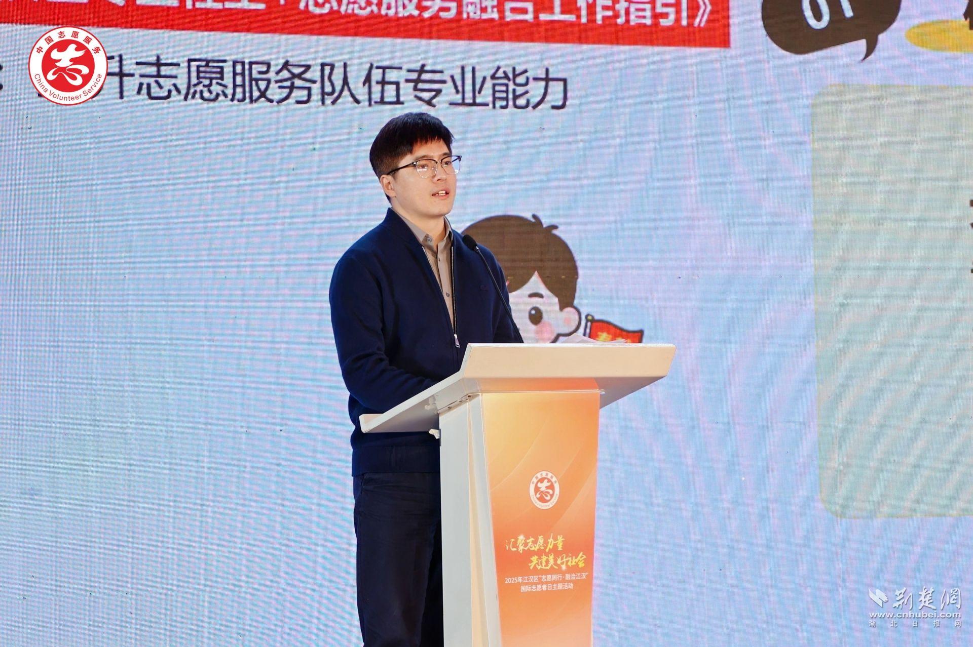 活動伊始,武漢市委社會工作部相關(guān)負(fù)責(zé)人首先傳達了習(xí)近平總書記給中國志愿服務(wù)聯(lián)合會的賀信精神并致辭?!百R信對新時代志愿服務(wù)工作提出了更高要求,也為全市志愿服務(wù)事業(yè)高質(zhì)量發(fā)展指明了方向?!彼硎荆瓭h區(qū)作為武漢志愿服務(wù)的重要力量,要在志愿服務(wù)專業(yè)化、品牌化和社會化方面持續(xù)探索,推動志愿服務(wù)更聚焦民生所需,更貼近基層治理實際,讓志愿精神在江漢持續(xù)發(fā)光發(fā)熱。