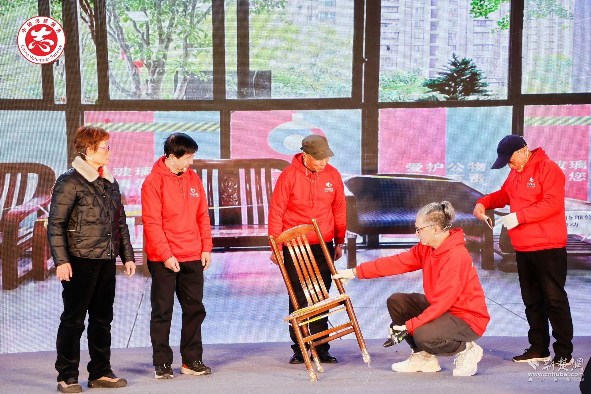 隨后的項目展演瞬間點燃?xì)夥眨尅皩I(yè)力量+志愿行動”在舞臺上鮮活呈現(xiàn)。江漢里社區(qū)“煥新工坊”把舊家具的去處變成社區(qū)治理的創(chuàng)意源頭;“江城騎俠”則把藍(lán)騎士的每日配送延展為一張城市暖心網(wǎng)。作為第六屆“社志同行 益匯江漢”公益創(chuàng)投大賽的優(yōu)秀項目代表,兩支隊伍將真實場景搬上舞臺,讓志愿服務(wù)如何進入社區(qū)、推動治理創(chuàng)新,一目了然。