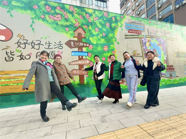 “復(fù)興時光里”特色手繪墻成現(xiàn)場打卡熱點,墻上不僅繪有社區(qū)特色地圖與“十五分鐘生活圈”元素,還承載著居民的共同記憶,為社區(qū)文化建設(shè)添上靚麗一筆,成了鄰里溫情與社區(qū)活力的見證。
