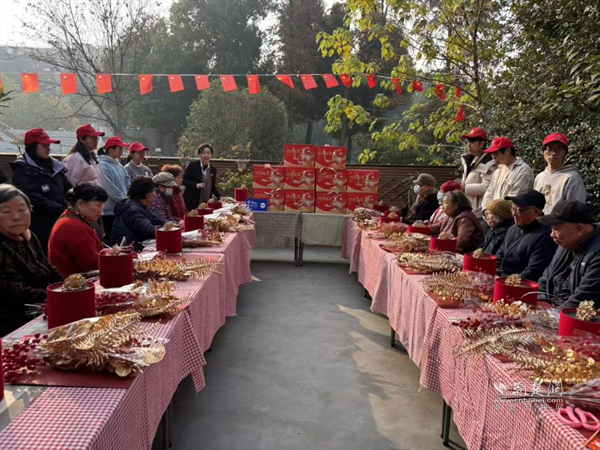 為鍛煉老人動手能力與思維敏捷度,活動設(shè)趣味手工環(huán)節(jié)。老人們在社區(qū)工作人員與武大學生志愿者指導下,將干花、仿真花細心插進裝飾桶?,F(xiàn)場笑聲不斷,老人們舉著作品展示、合影,既收獲成就感,又拉近鄰里距離,傳遞社區(qū)溫情。