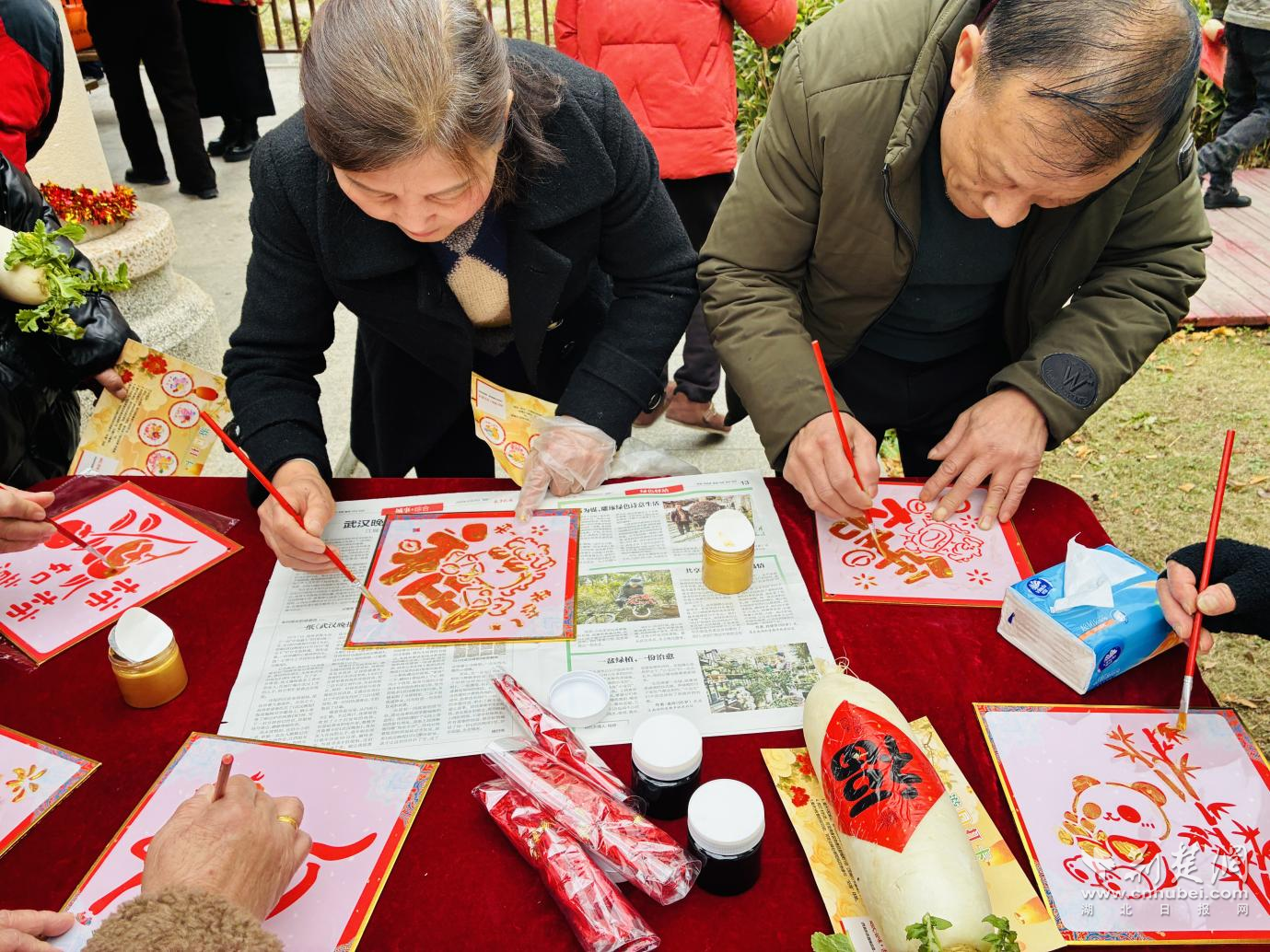 手工體驗(yàn)區(qū)則充滿了濃厚的文化韻味,大家在志愿者的指導(dǎo)下,將雕刻著不同書體“?!弊峙c馬年吉祥紋樣的模板,小心翼翼拓印在紅色宣紙上。當(dāng)一幅幅帶著墨香的福字躍然紙上,不僅定格了傳統(tǒng)技藝的獨(dú)特魅力,更承載著大家對(duì)新年福氣盈門的美好期盼?!拔彝亓艘粋€(gè)‘?!?,打算帶回家貼在門上,希望新的一年全家都福氣滿滿!”一位年輕媽媽舉著自己的作品,開心地分享道。