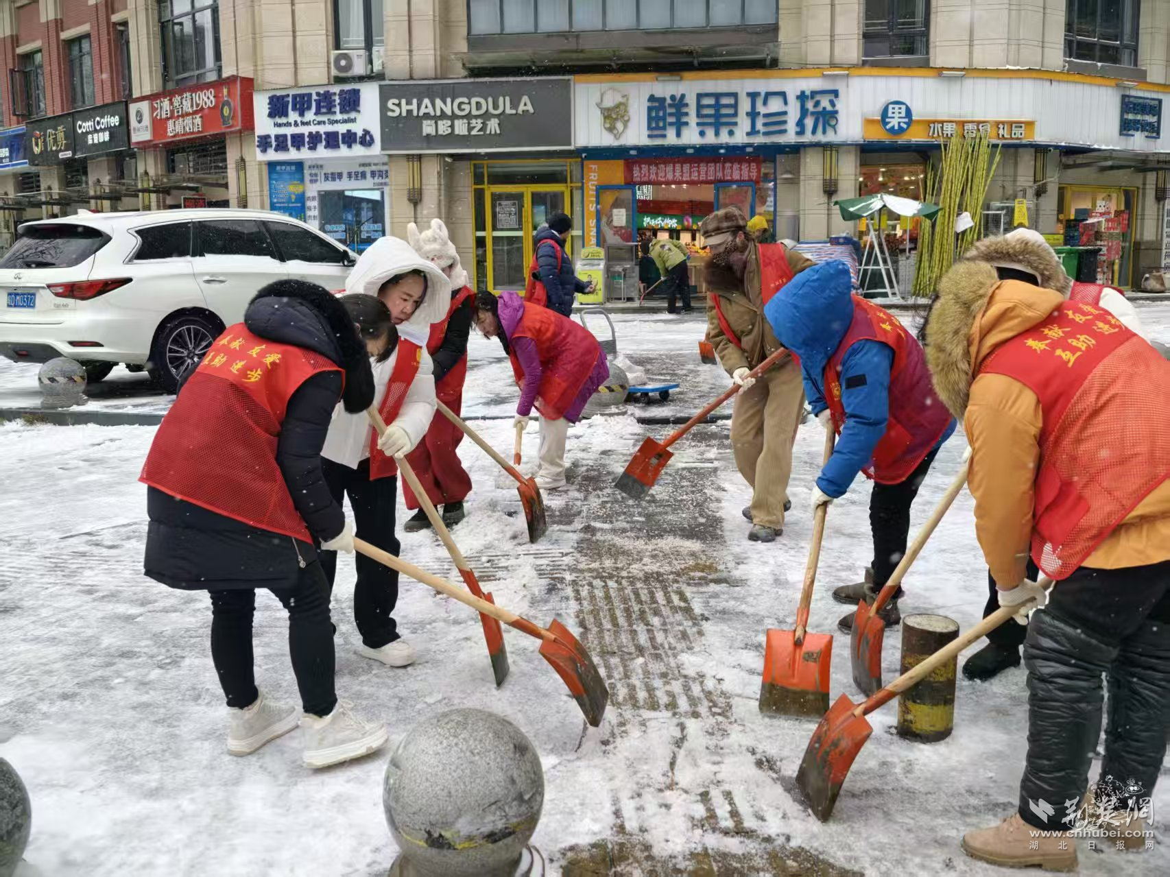 凜冽寒風中,一抹抹“志愿紅”成為冬日里最溫暖的風景。鐵鍬、雪鏟、掃帚齊上陣,大家分工協(xié)作、默契配合,有人清掃路面浮雪,有人鏟除頑固冰層,有人精準撒布融雪劑防止復凍,還有人專門在單元門口、坡道、背街小巷等易滑點位反復排查、重點清理。