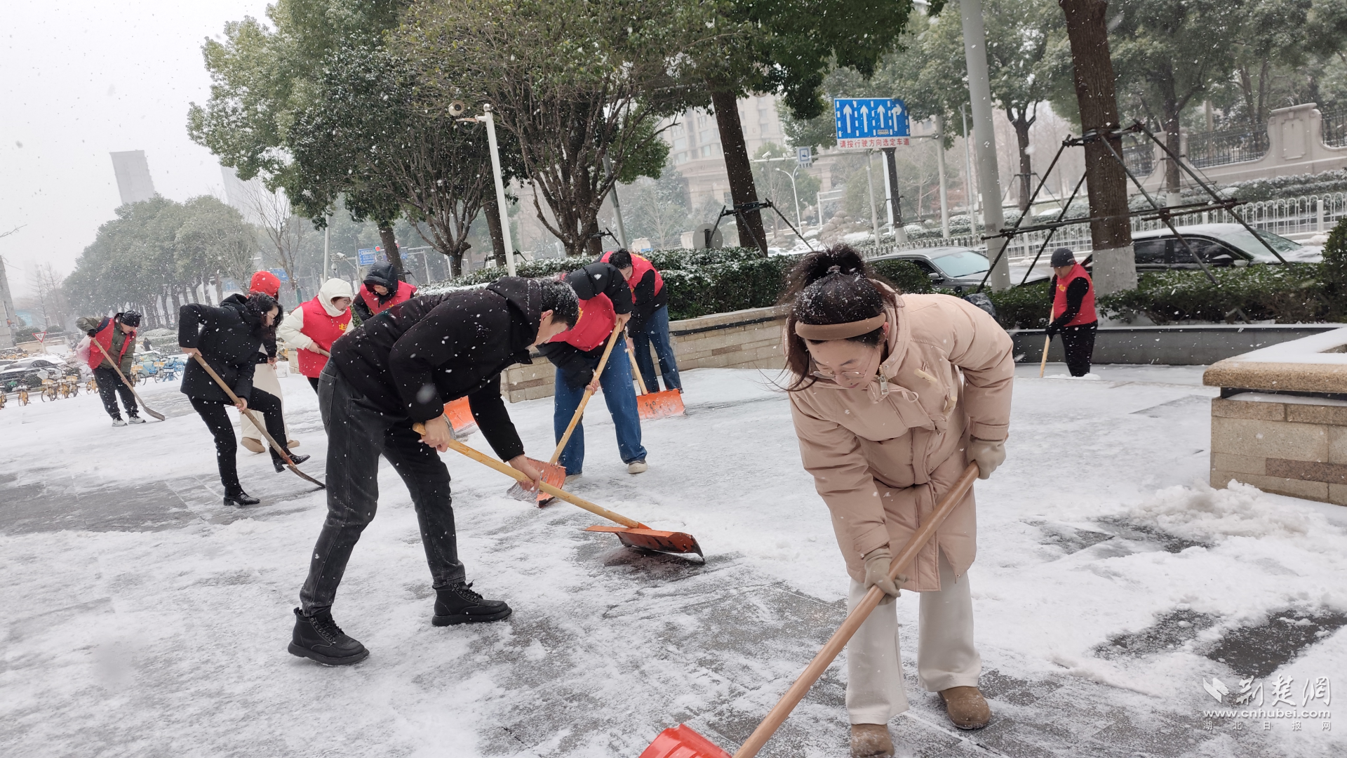 萬松街道則積極動員樓宇集聚區(qū)新興領域黨組織、商鋪和流動黨員組建志愿服務隊伍,開展清雪除冰行動。江漢人力資源服務產(chǎn)業(yè)集聚區(qū)黨委發(fā)出倡議,10余家企業(yè)、100余名職工志愿者迅速響應。從商務樓宇到中央商務區(qū)地鐵沿線,清雪行動全面鋪開,為早晚高峰通行贏得時間。