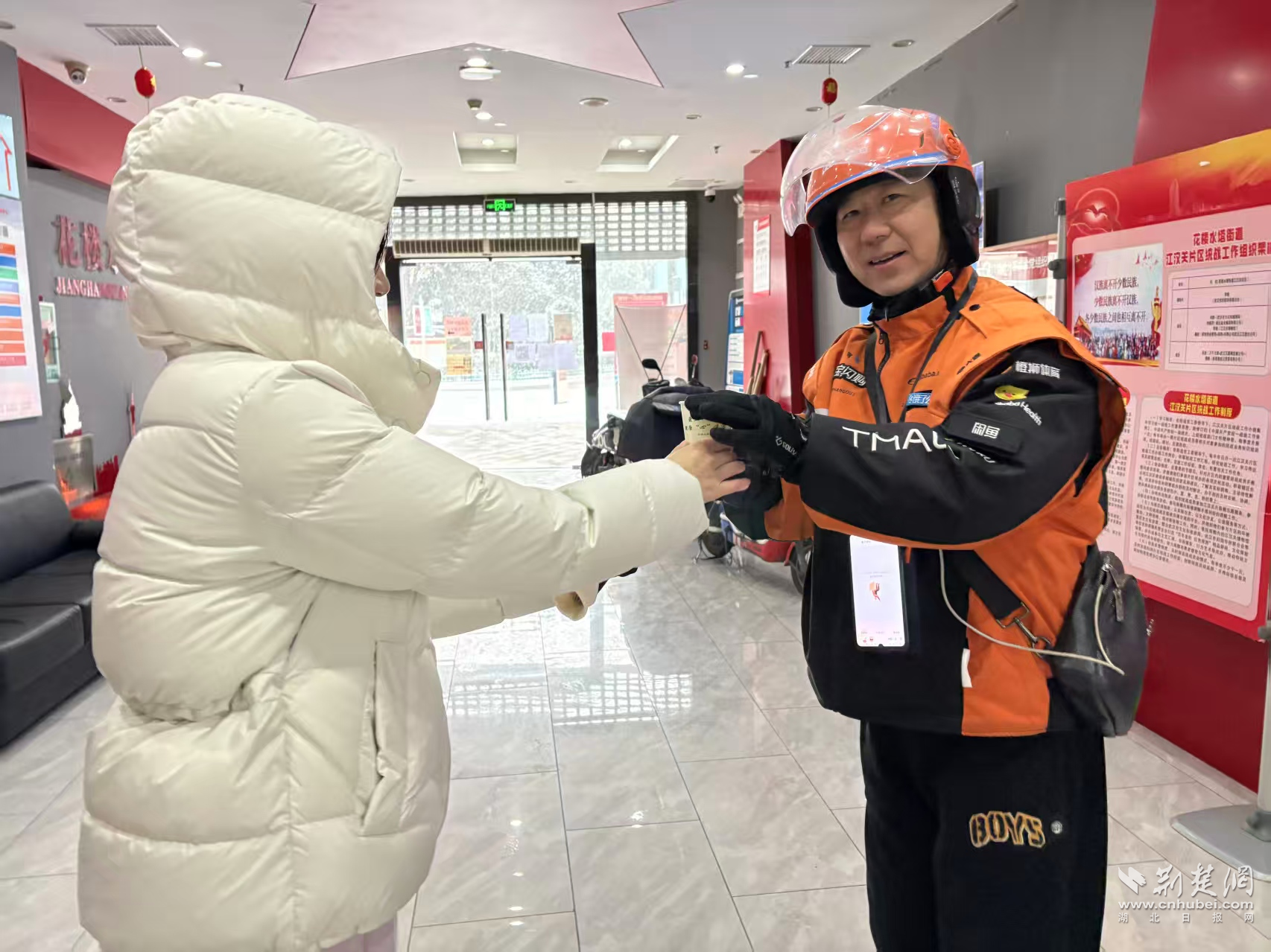 一杯熱茶、一鏟積雪、一頓熱飯。冰雪之中,江漢區(qū)的新就業(yè)群體既被看見、被關懷,也被信任、被動員,逐步從“服務對象”轉變?yōu)椤爸卫砘锇椤?。他們熟悉道路、貼近一線,成為城市應急響應中反應最快、覆蓋最廣的一支力量。