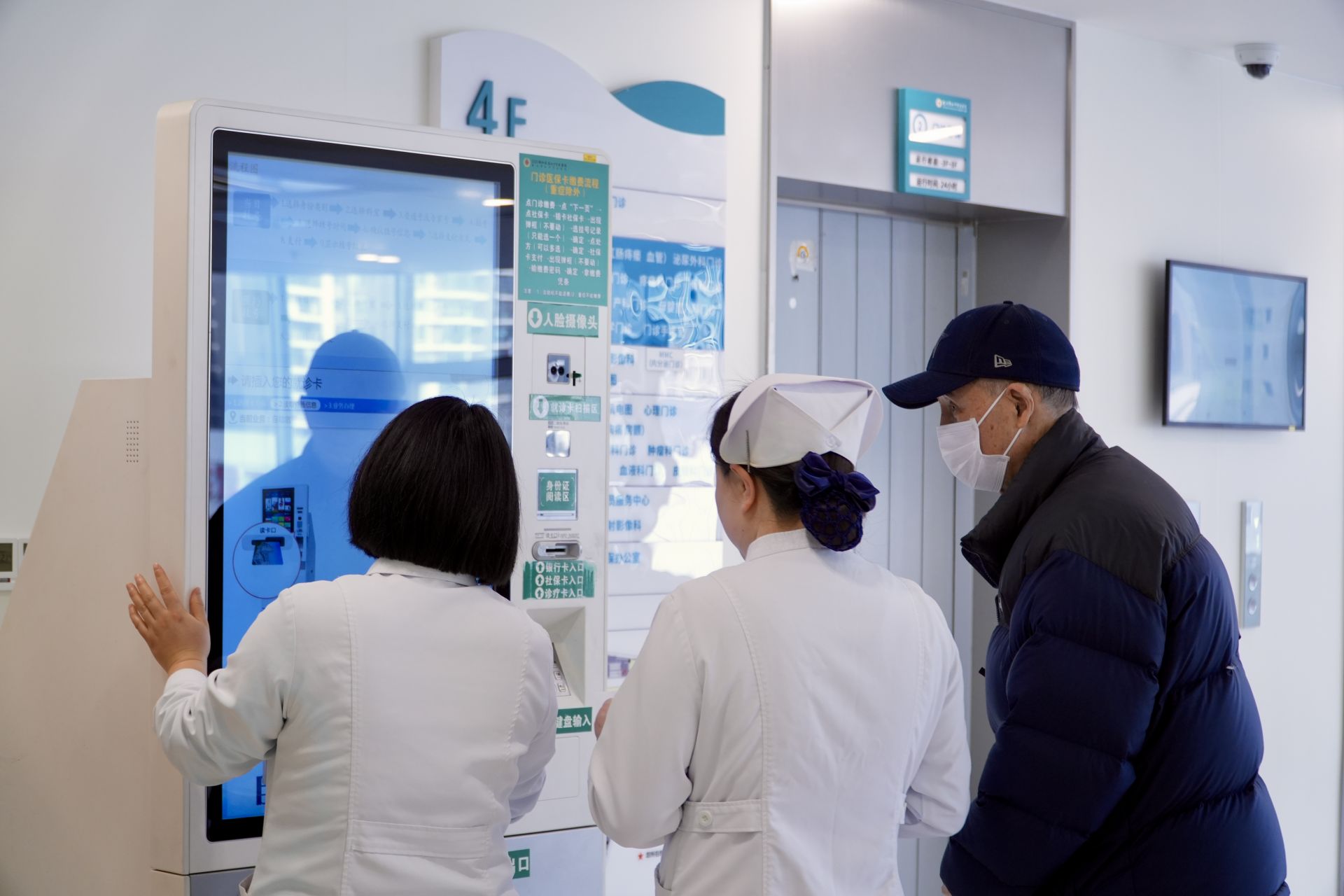 進入門診大廳,導診臺、自助掛號機分布在顯眼位置。記者注意到,多名醫(yī)護人員和志愿者在大廳內來回巡查,看到行動不便的老人,便主動上前詢問,幫忙完成掛號等流程,就診秩序平穩(wěn)有序。