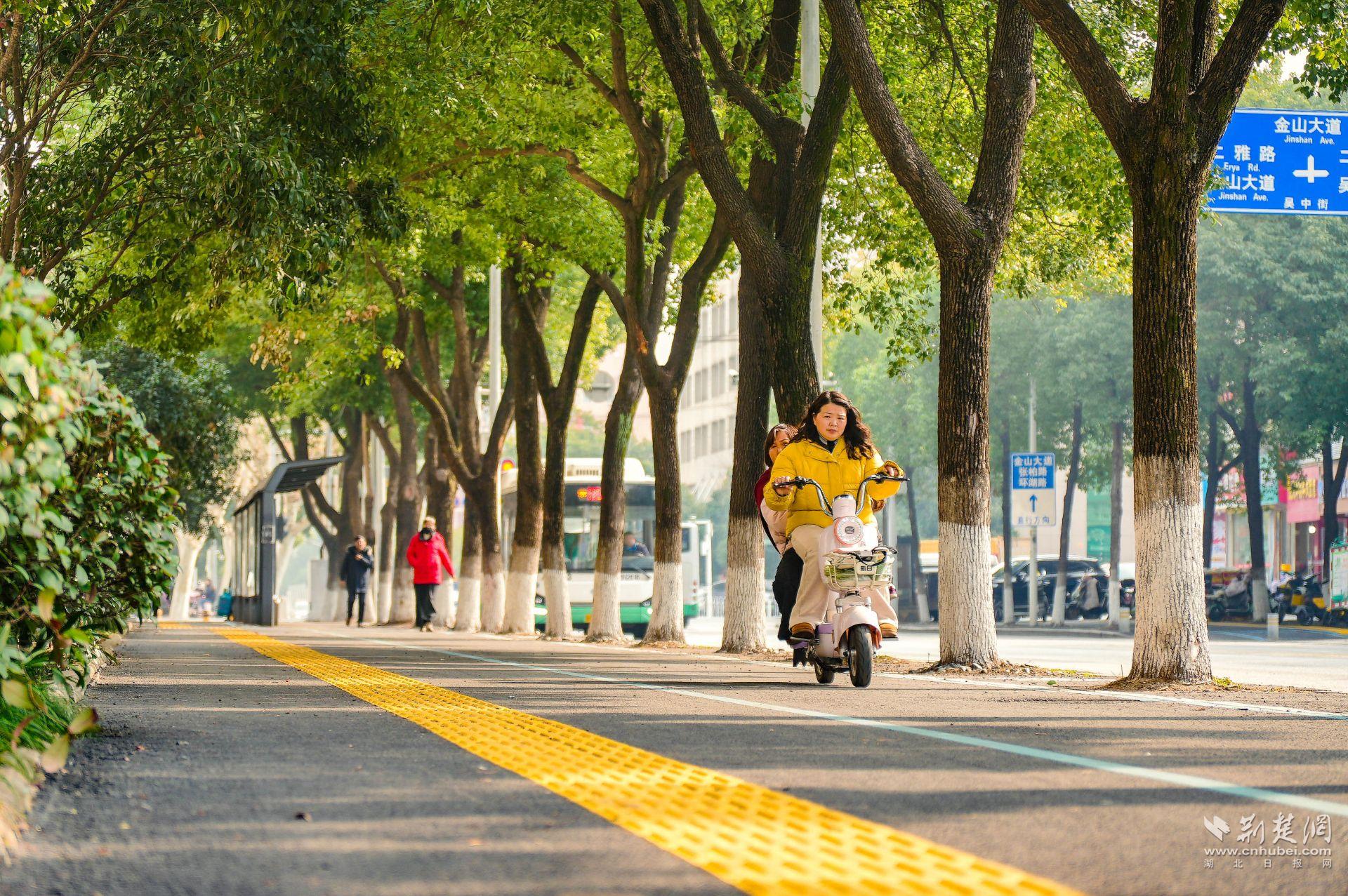 另一個明顯變化是,人行道旁多出了一條清晰的非機動車道。過去,吳中街沒有專門的非機動車道,人車混行存在隱患?,F在,“人非共面”的模式讓騎行與步行各自有序,盲道也同步更新,安全系數大幅提升。