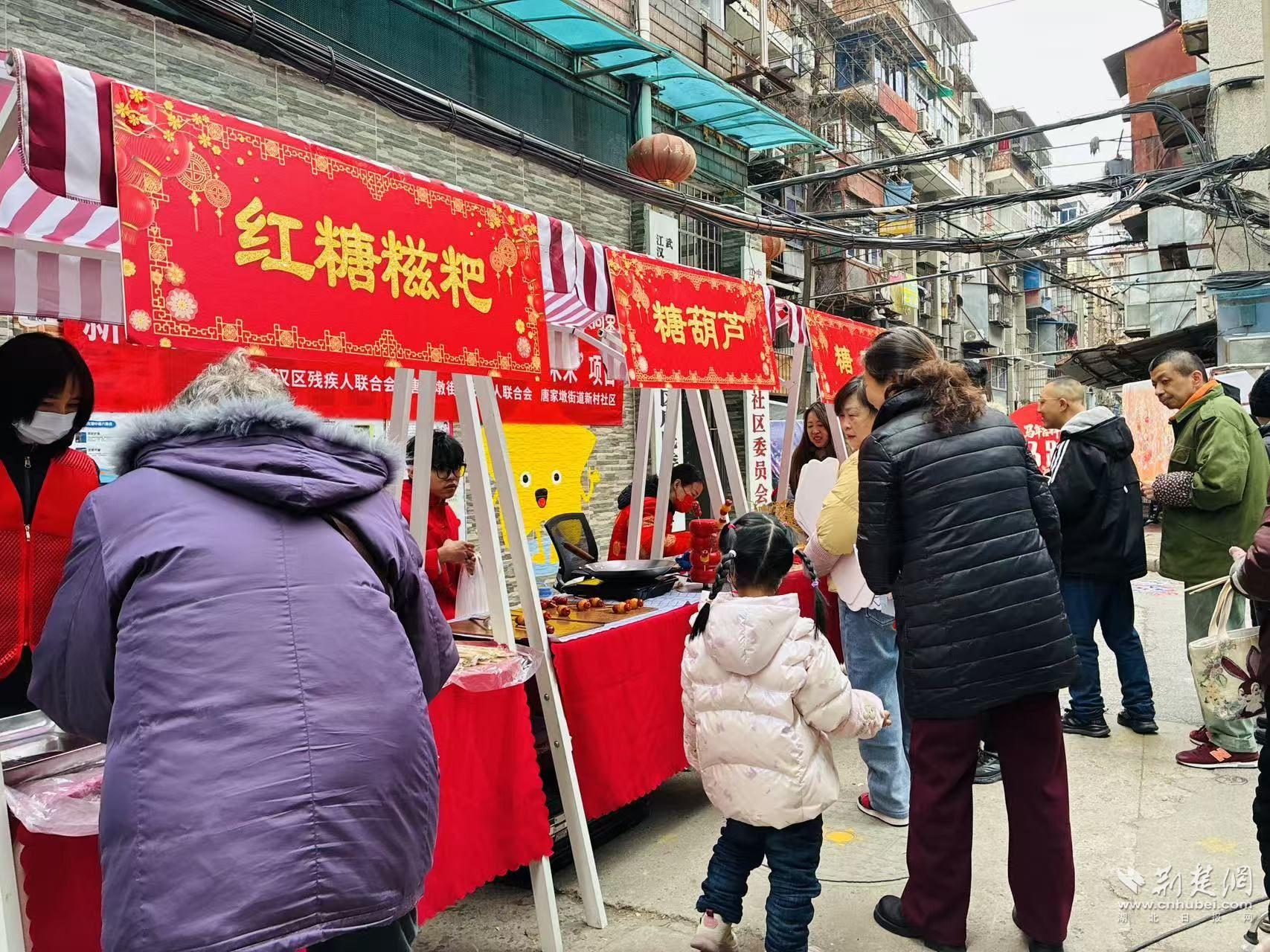 當(dāng)天,新村社區(qū)舉辦“匠心傳承煥新彩 非遺助殘啟未來”項(xiàng)目系列活動(dòng)之一——“非遺游園匯百藝 鄰里同心啟新章”。在江漢區(qū)殘疾人聯(lián)合會(huì)和唐家墩街道殘疾人聯(lián)合會(huì)的指導(dǎo)下,這場(chǎng)游園會(huì)以非遺為紐帶,把文化體驗(yàn)、鄰里互動(dòng)和助殘關(guān)懷融進(jìn)一場(chǎng)“家門口的過年”。