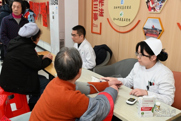 健康義診區(qū)里,武漢市第三醫(yī)院的醫(yī)護(hù)團(tuán)隊(duì)耐心為居民測(cè)量血壓、血糖,細(xì)致解答健康疑問(wèn),并給予個(gè)性化指導(dǎo)。“在家門口就能享受到這么周到的醫(yī)療服務(wù),心里特別踏實(shí)?!本用窭畎⒁踢B連稱贊。