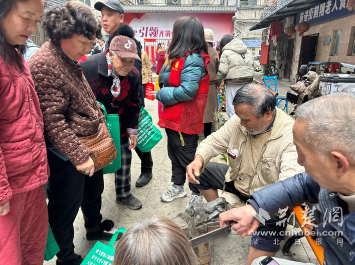 便民服務(wù)區(qū)人氣最旺。武商集團(tuán)世貿(mào)廣場帶來的專業(yè)皮具清理服務(wù),讓不少“老物件”煥然一新;理發(fā)、磨刀、洗鞋、洗鍋等攤位前,志愿者們動作嫻熟、服務(wù)周到,幫居民解決生活中的“關(guān)鍵小事”。