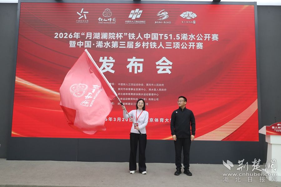 荊楚網(wǎng)(湖北日報網(wǎng))訊(通訊員 方俊 陳祎夏 陳杰明)3月20日上午,2026年“月湖瀾院杯”鐵人中國T51.5浠水公開賽暨中國·浠水第三屆鄉(xiāng)村鐵人三項公開賽在北京體育大學發(fā)布,中國鐵人三項運動協(xié)會秘書長秦建秋向浠水縣副縣長徐敏授賽旗,與會人員共同按亮啟動球,標志著賽事全面啟動。