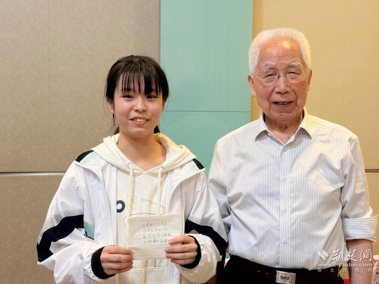 高一(4)班的趙古悅聽完講座心潮澎湃,當(dāng)場提筆寫下一首藏頭詩,以詩抒懷,致敬航天前輩。“龍頭揚(yáng)志氣高昂,樂終生偉業(yè)八方。豪情流淌引新航,點燃薪火后路長。”在休息室內(nèi),她將這首飽含敬意的小詩輕聲念給龍樂豪總師聽,聲音還帶著幾分緊張的顫抖。龍樂豪親切地安撫了她,并感謝她的創(chuàng)作,勉勵她珍惜時光、勤學(xué)奮進(jìn)。