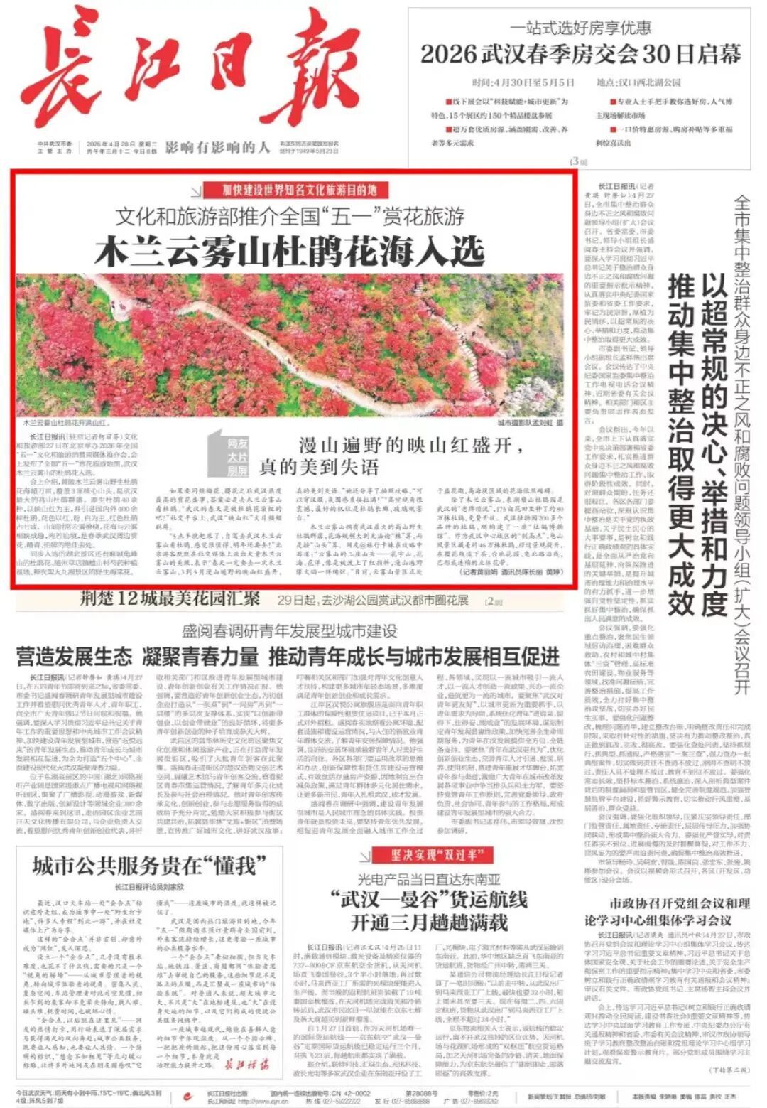 會上介紹,黃陂木蘭云霧山野生杜鵑花海超萬畝,覆蓋3座核心山頭,是武漢最大的高山杜鵑群落。原生杜鵑40余種,以映山紅為主,并引進國內(nèi)外400余種杜鵑,花色以紅、粉、白為主,紅色杜鵑占七成。山間時常云霧繚繞,花海與云霧相映成趣,宛若仙境,是春季武漢周邊賞花、踏青、拍照的絕佳去處。
