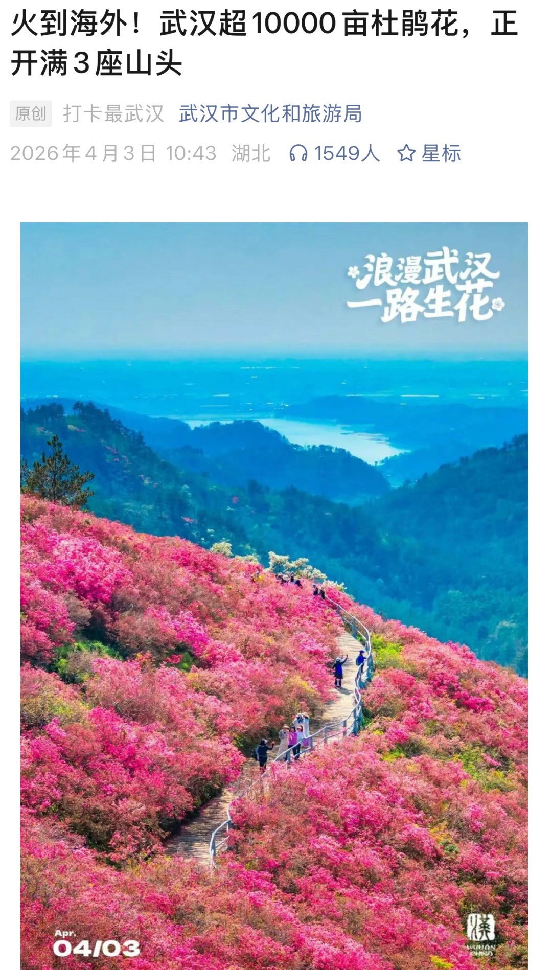“武漢的春天是被杜鵑花染紅的吧?”社交平臺上,武漢“映山紅”大片頻頻刷屏。
