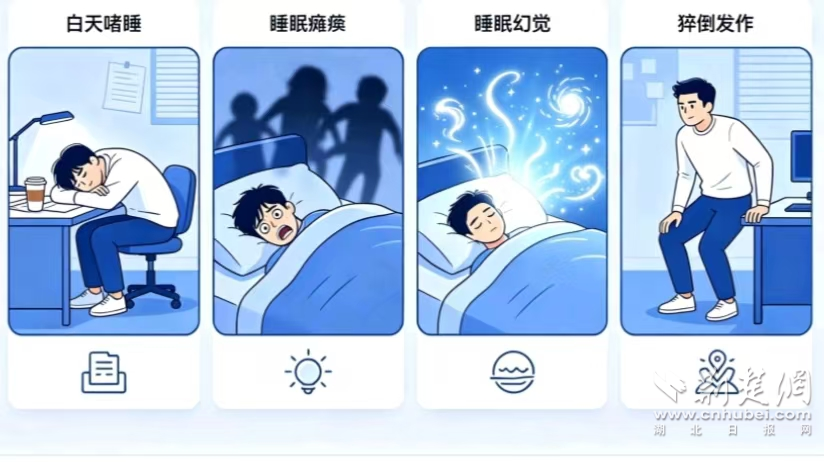 發(fā)作性睡病存在四大典型發(fā)病特征,大眾需加強(qiáng)辨別。一是日間突發(fā)性嗜睡,即便夜間作息規(guī)律、睡眠充足,白天仍會(huì)不受控犯困,行走、上課、靜坐時(shí)都可能突然入睡,短暫休息后雖能短暫緩解,困倦感卻會(huì)反復(fù)出現(xiàn)。二是情緒性猝倒,遭遇大笑、驚喜、氣憤等強(qiáng)烈情緒刺激時(shí),容易出現(xiàn)眼皮下垂、肢體無力、身體發(fā)軟等情況,嚴(yán)重時(shí)會(huì)突發(fā)摔倒,但意識(shí)完全清晰。三是睡眠癱瘓,也就是大眾常說的“鬼壓床”,在入睡初期或剛蘇醒時(shí),意識(shí)清醒但身體無法活動(dòng)、難以發(fā)聲,短時(shí)間后可自行緩解。四是入睡前異?;糜X,半夢半醒之間會(huì)看見怪異人影、奇異光影,或是聽見異常聲響,畫面和感受極度逼真,極易被誤判為心理問題。
