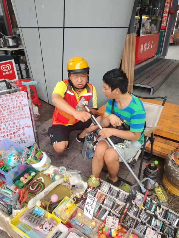 司照天在黃石街頭幫助殘疾人擺攤 攝影:韋銘