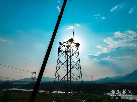 荊楚網(wǎng)(湖北日?qǐng)?bào)網(wǎng))訊(通訊員曹祥魁 袁勝)8月23日下午5點(diǎn),黃石陽(yáng)新縣陶港鎮(zhèn)祠堂畈附近,40多米高鐵塔上4名電力工人渾身濕透,他們扶著頭頂上吊車吊過來的鐵部件,開始了最后“一吊”的組塔工作。
