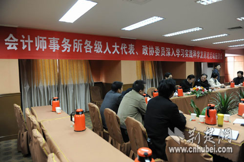 11月14日下午,省注冊會計師行業(yè)黨委在武昌財苑大廈召開了全省注冊會計師行業(yè)各級人大代表、政協(xié)委員深入學習實踐科學發(fā)展觀活動座談會。來自全省各地的16位各級人大代表、政協(xié)委員齊聚一堂,為深入學習實踐科學發(fā)展觀活動建言獻策,回顧二十年來注冊會計師行業(yè)黨建工作的發(fā)展歷程,展望會計師事務所行業(yè)的美好未來。