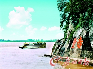 在赤壁縣城西邊的赤壁古戰(zhàn)場,如今依然江水滔滔。當(dāng)年“赤壁之戰(zhàn)”,經(jīng)此一役,定下三分天下格局。李白詩曰:“二龍爭戰(zhàn)決雌雄,赤壁樓船掃地空。烈火張?zhí)煺赵坪,周瑜于此破曹公!毕﹃栁飨拢t色的陽光灑在江面上,怎不讓人想起那烽火連天的三國?