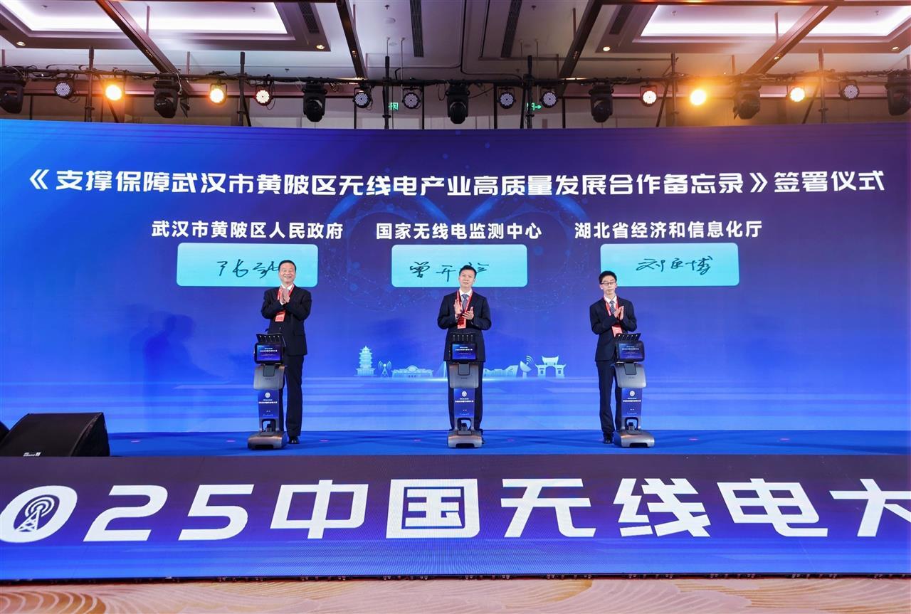 大會現(xiàn)場,國家無線電監(jiān)測中心、湖北省經濟和信息化廳與武漢市黃陂區(qū)人民政府共同簽署合作備忘錄,明確將在頻譜資源開發(fā)、監(jiān)管能力提升、低空無人機協(xié)同管理等方面深化合作,支撐保障黃陂區(qū)創(chuàng)建無線電頻譜資源開發(fā)利用及產業(yè)高地。